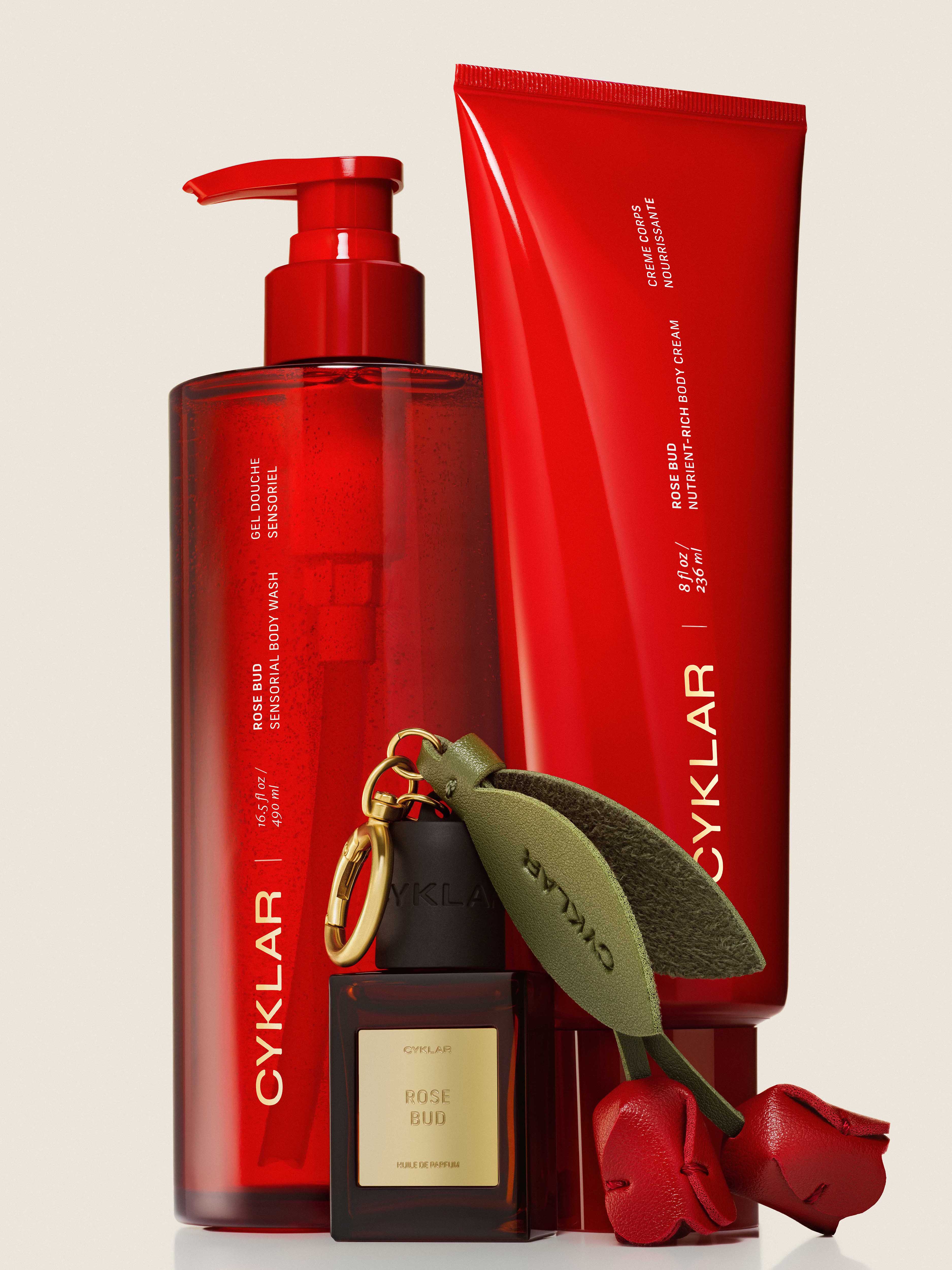A limited-edition bag charm that fits perfectly over CYKLAR Perfume Oil caps—allowing you to wear your signature scent wherever you go. Available as a gift with every purchase of the Rose Bud Essentials Set (while supplies last).